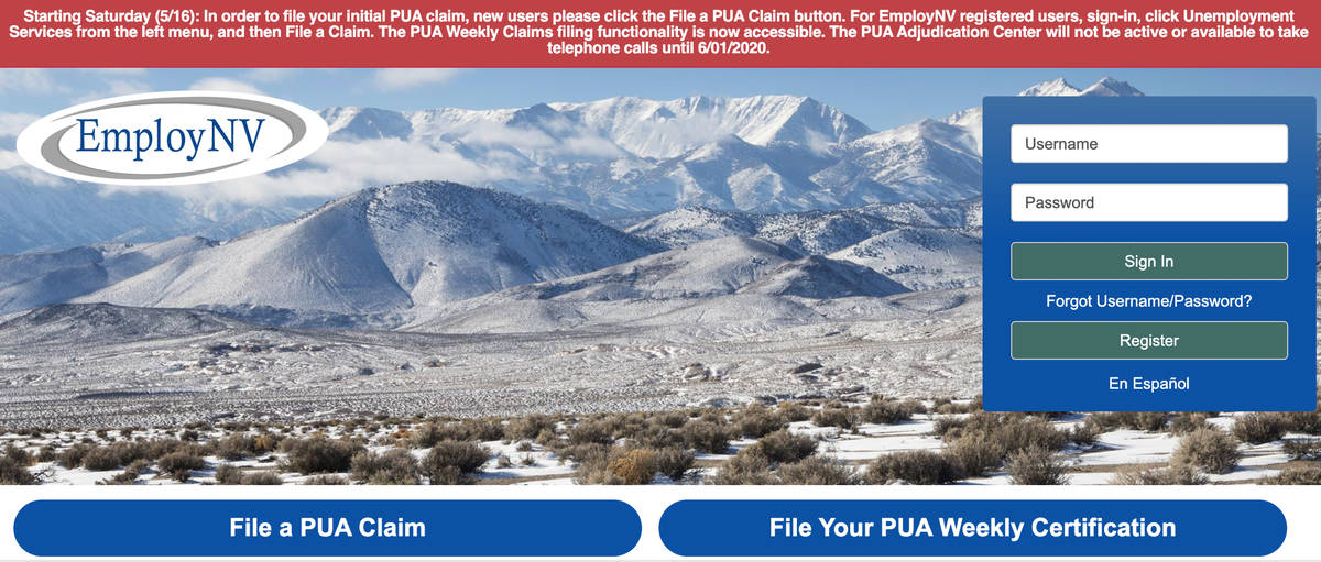 The website for Nevada PUA filers, employnv.gov, shows outdated information on Monday, June 1 2020. (Screen shot) Las Vegas gig workers say ‘no communication’ coming from DETR ...